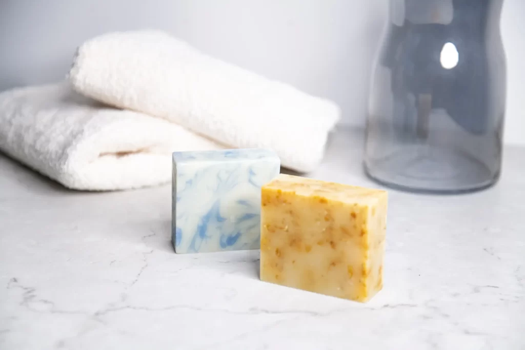 泡立てネットと石鹸をぬるま湯で濡らします。石鹸の裏表を数回こすり、石鹸を取り出したら、泡だてネットに空気を含ませるように回しながら泡立てます。
